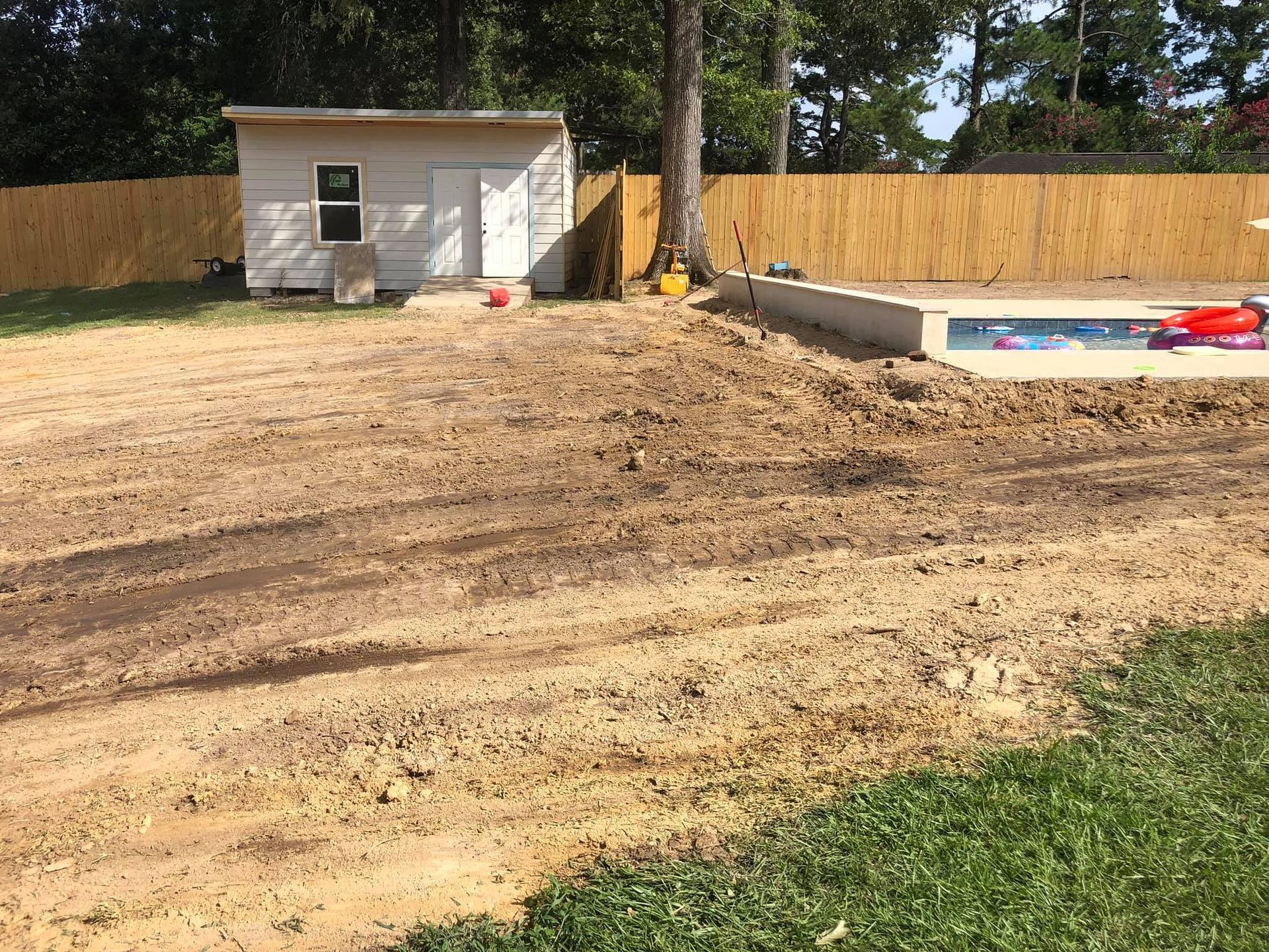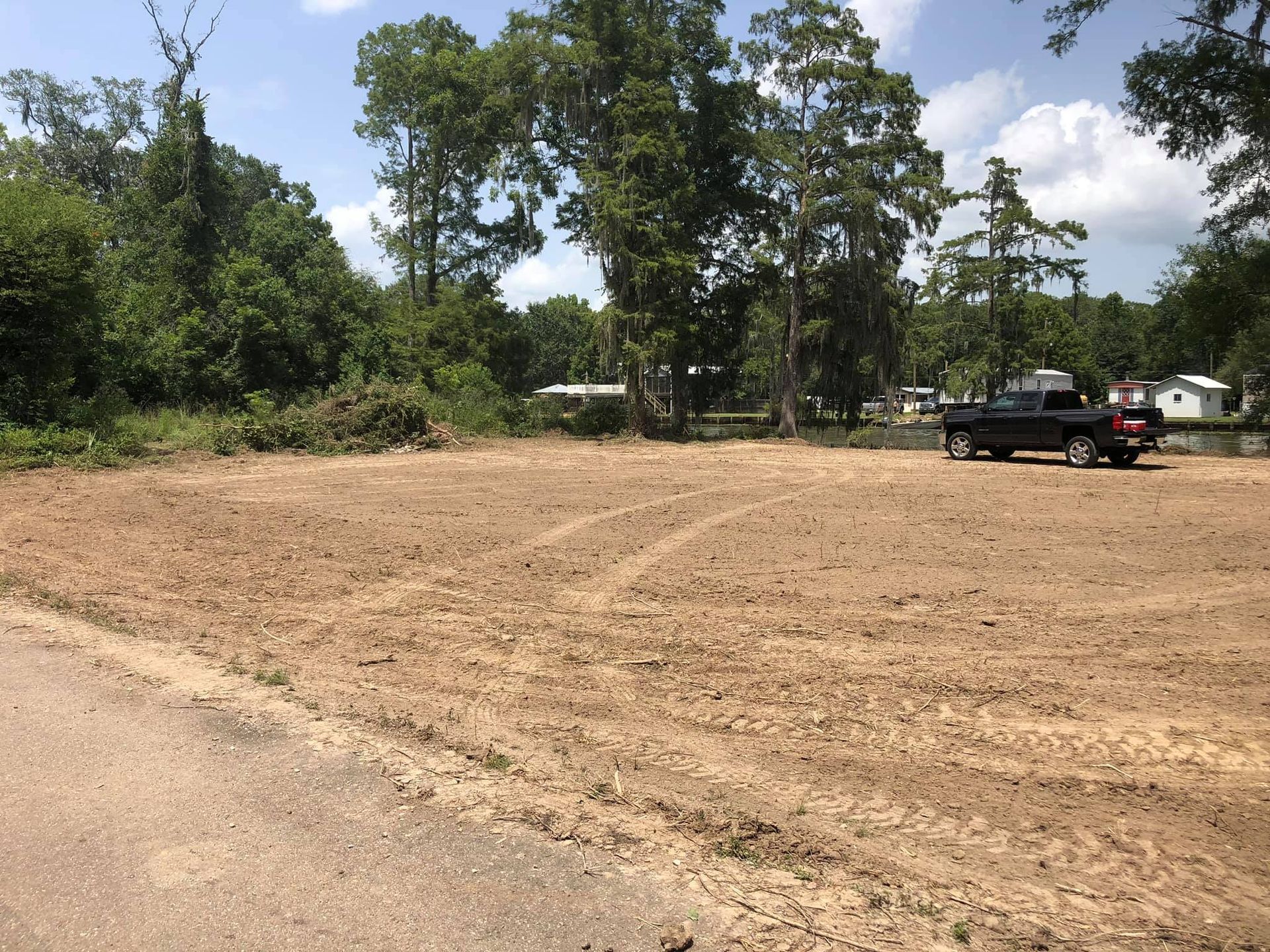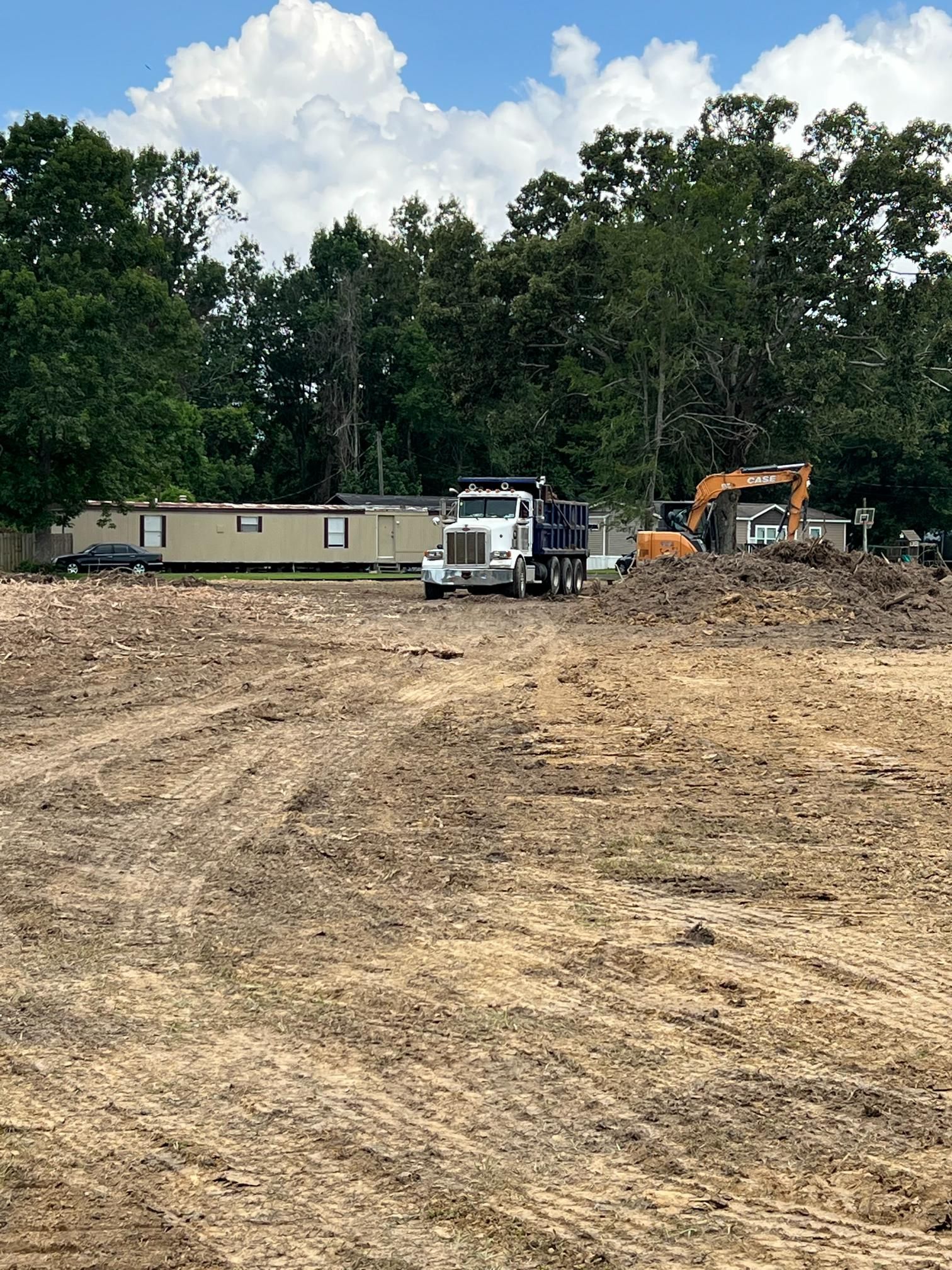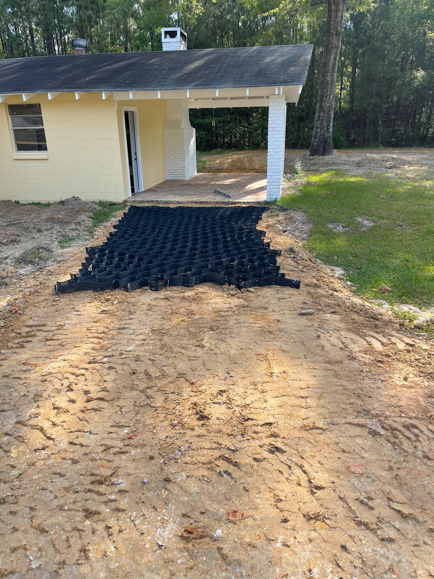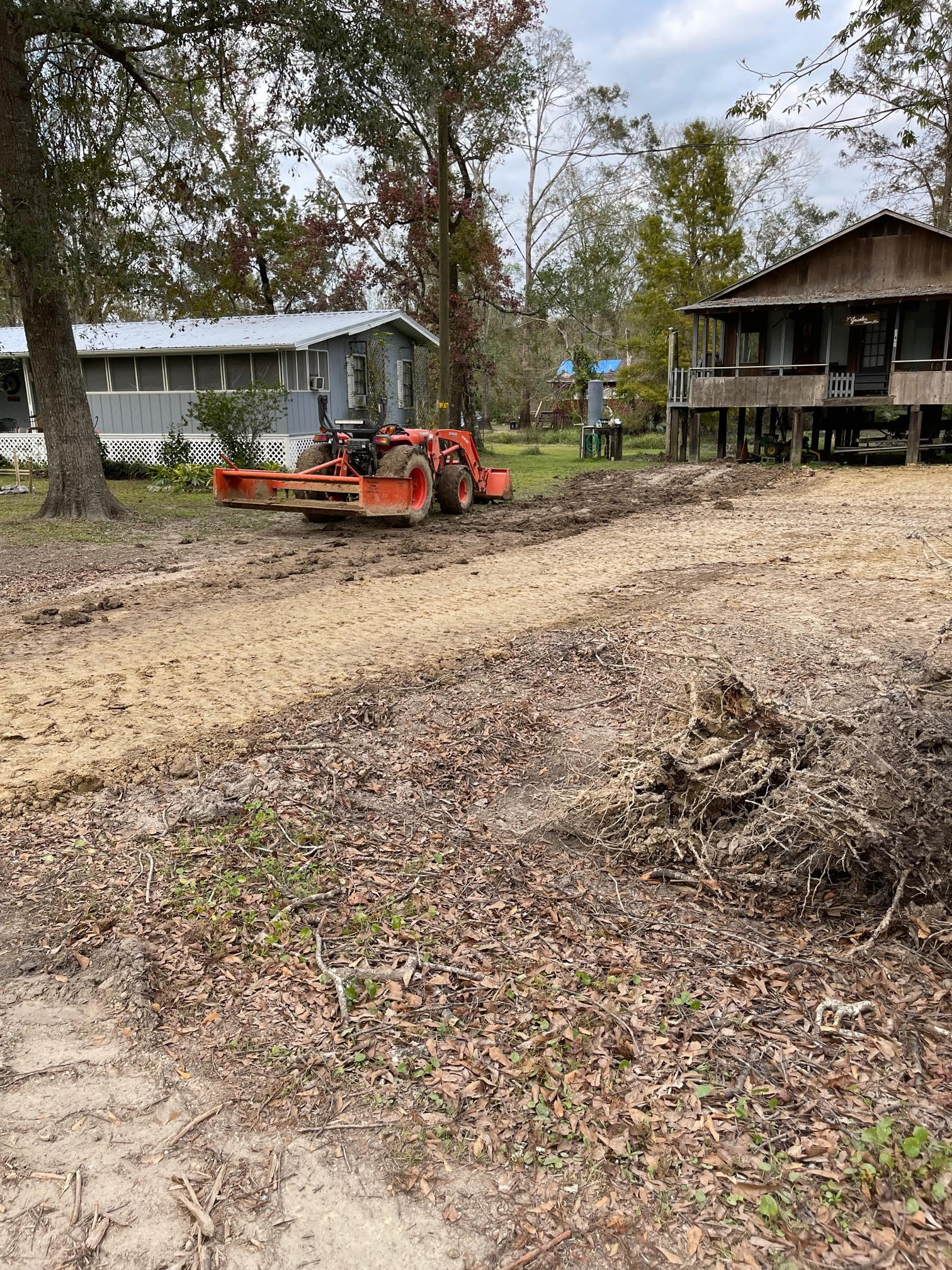 Site work after storm cleanup repair parking in yard - After