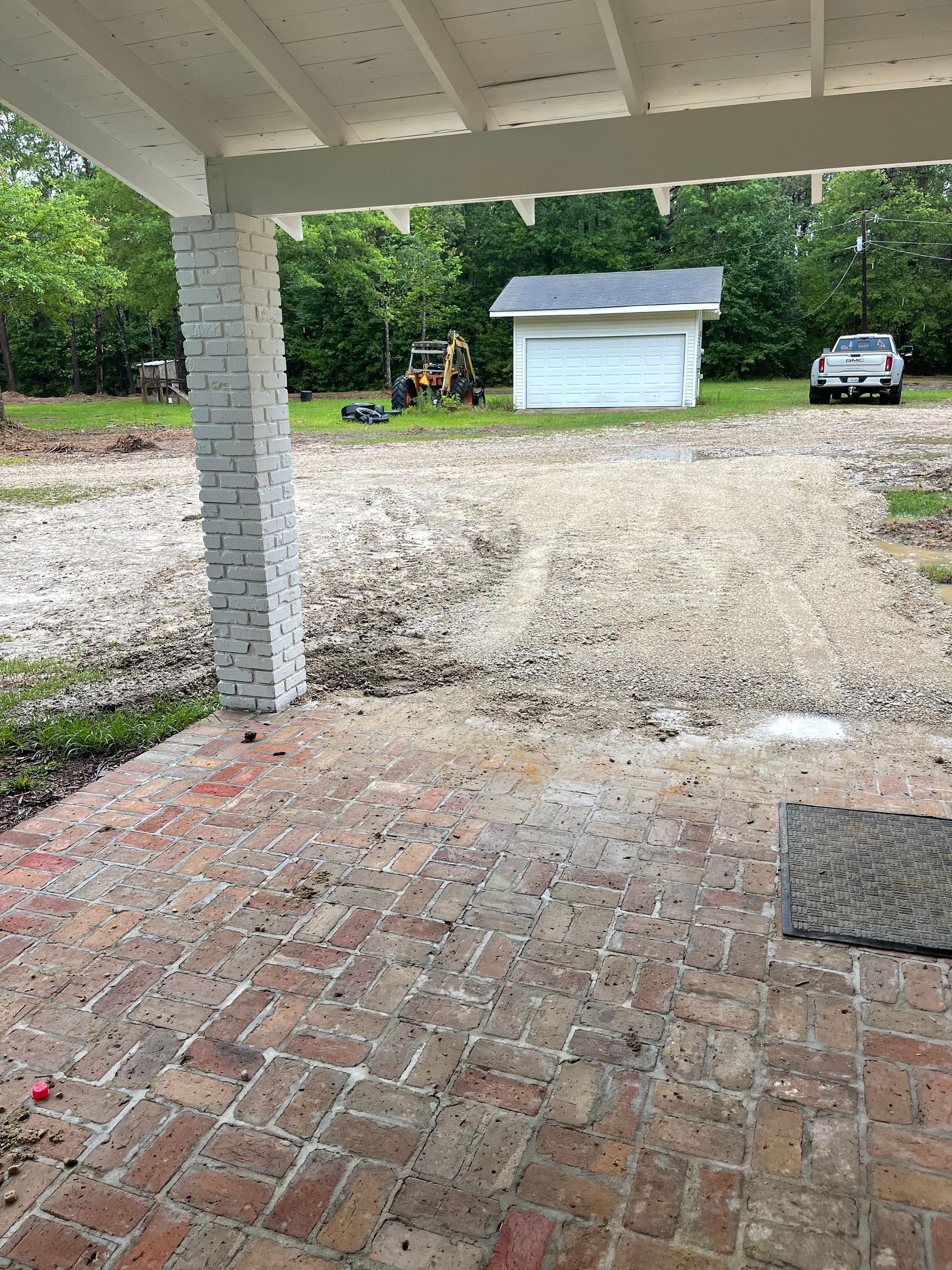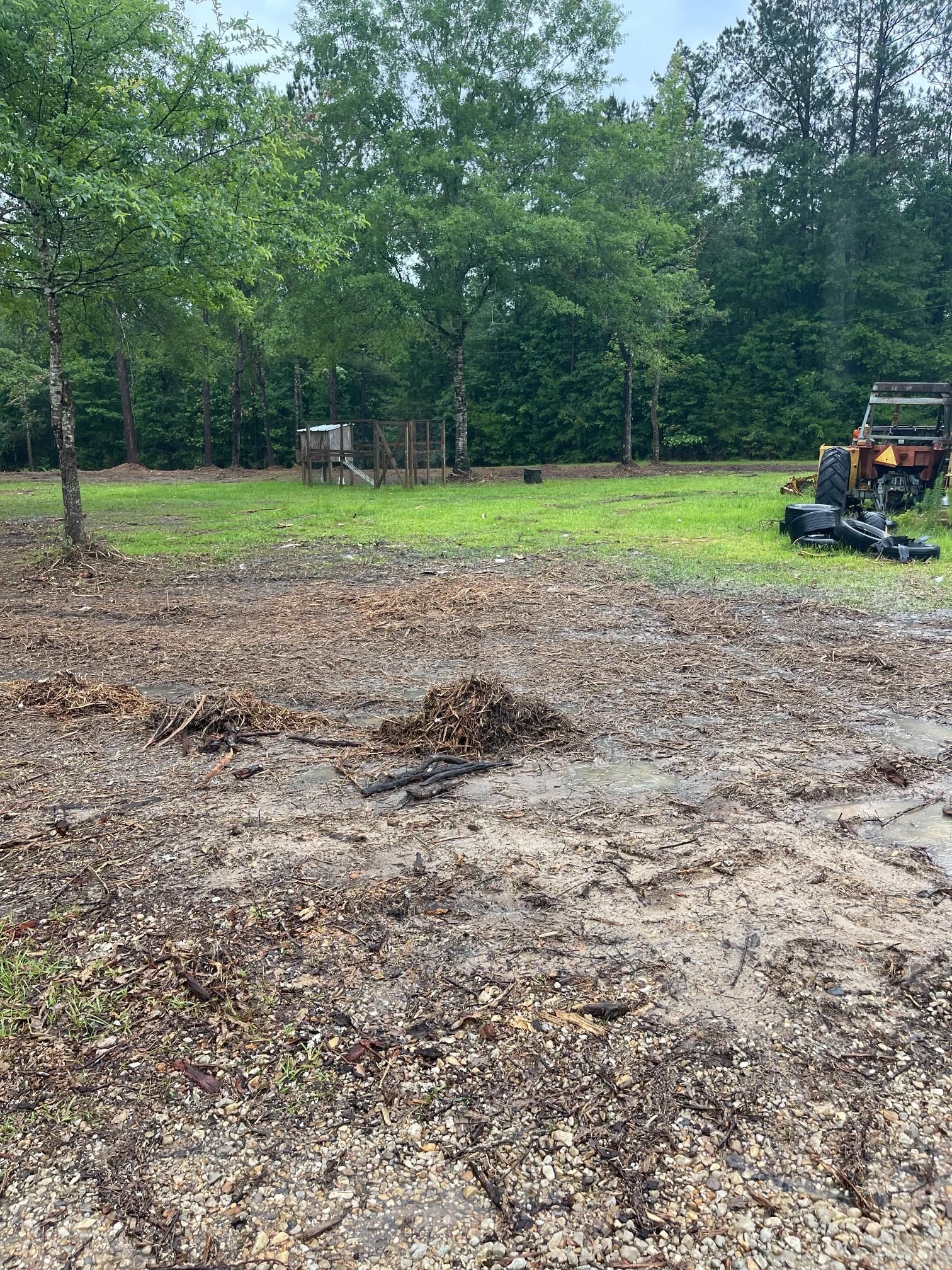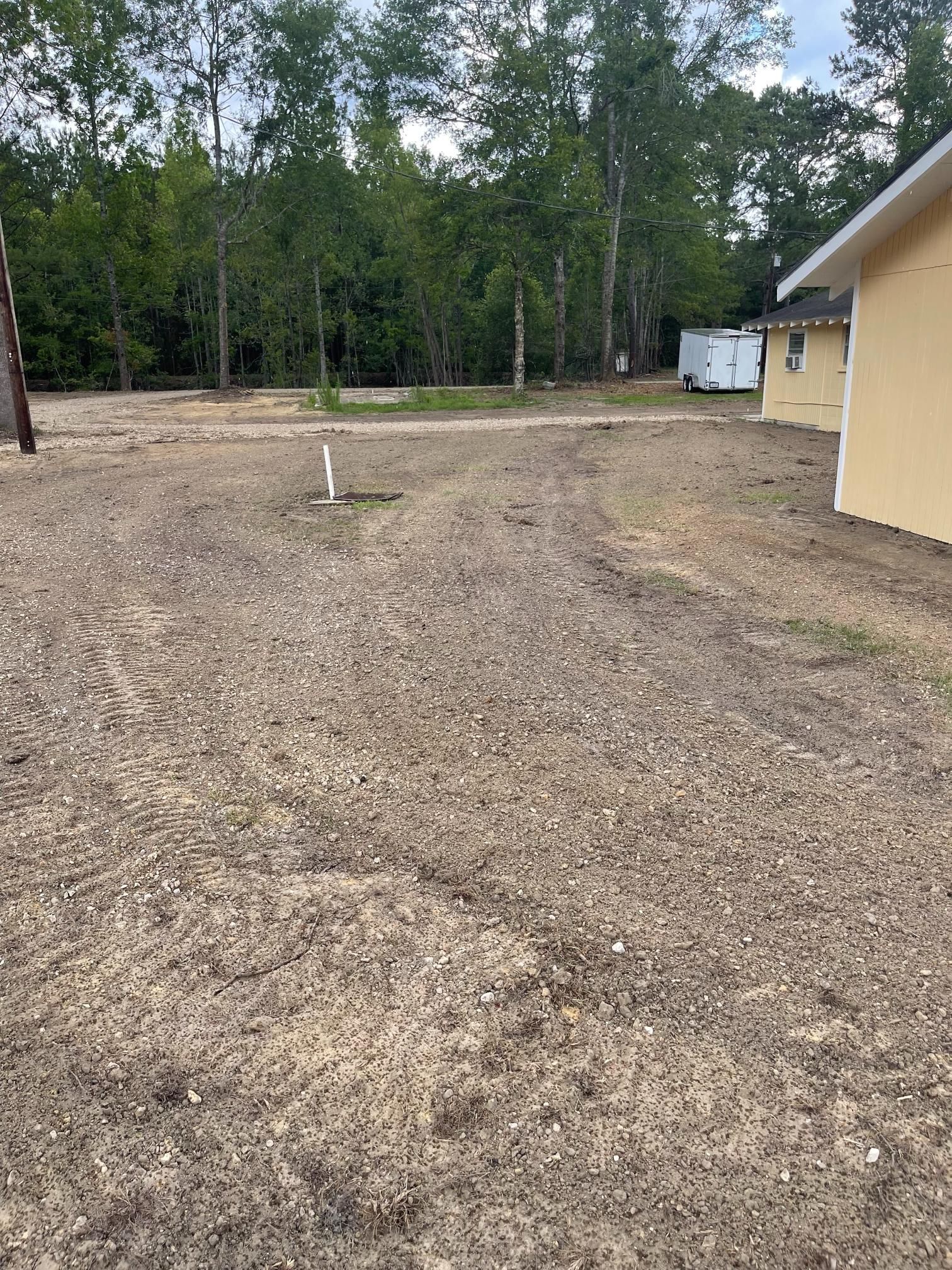 Site work after storm cleanup repair parking in yard - Before