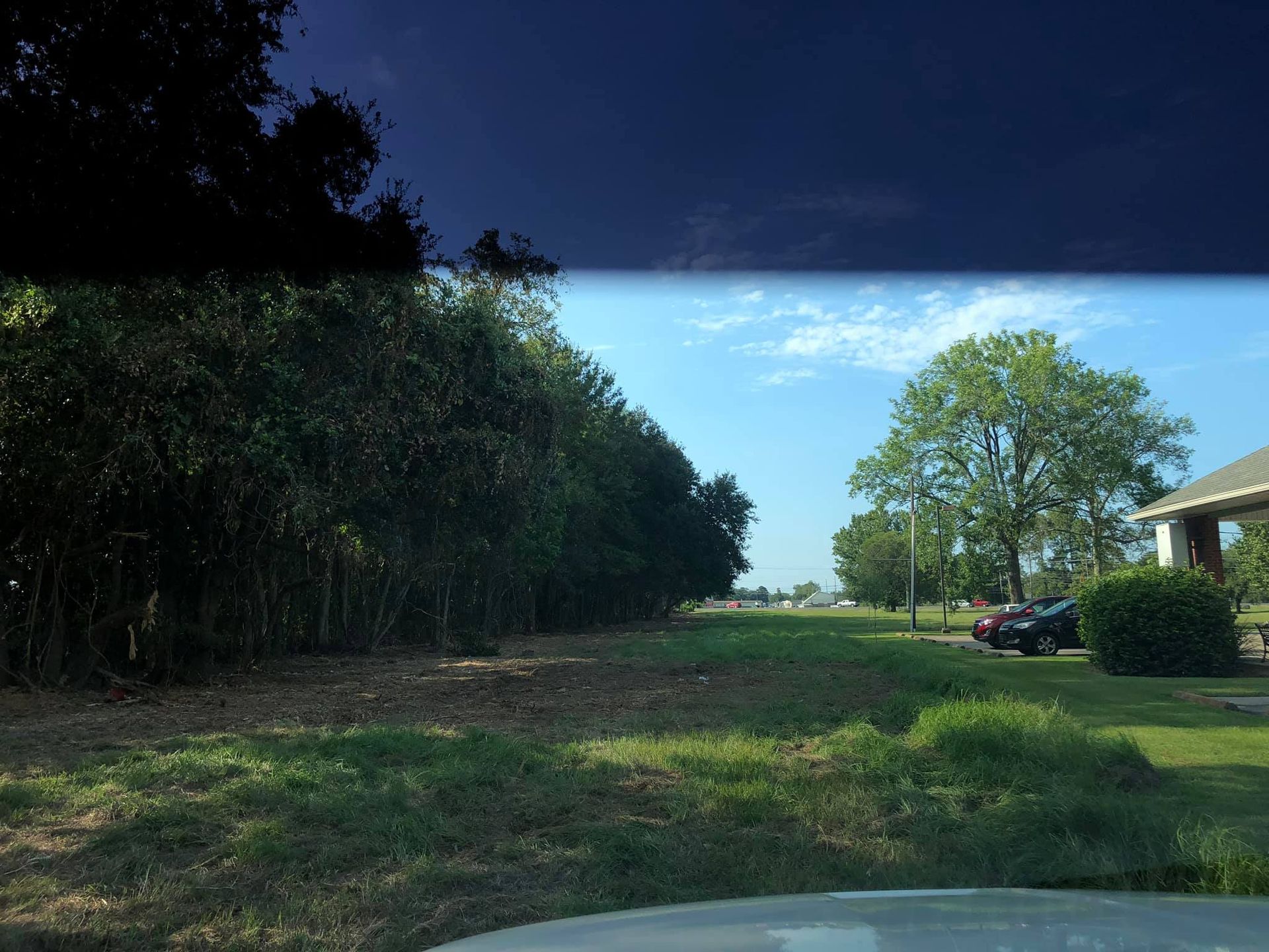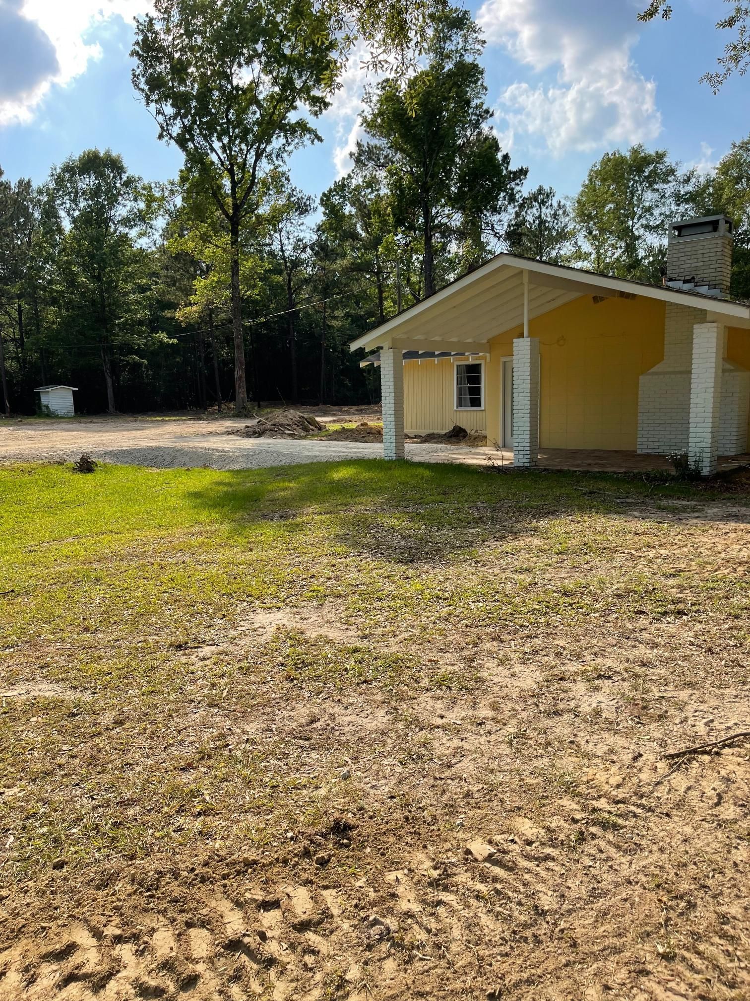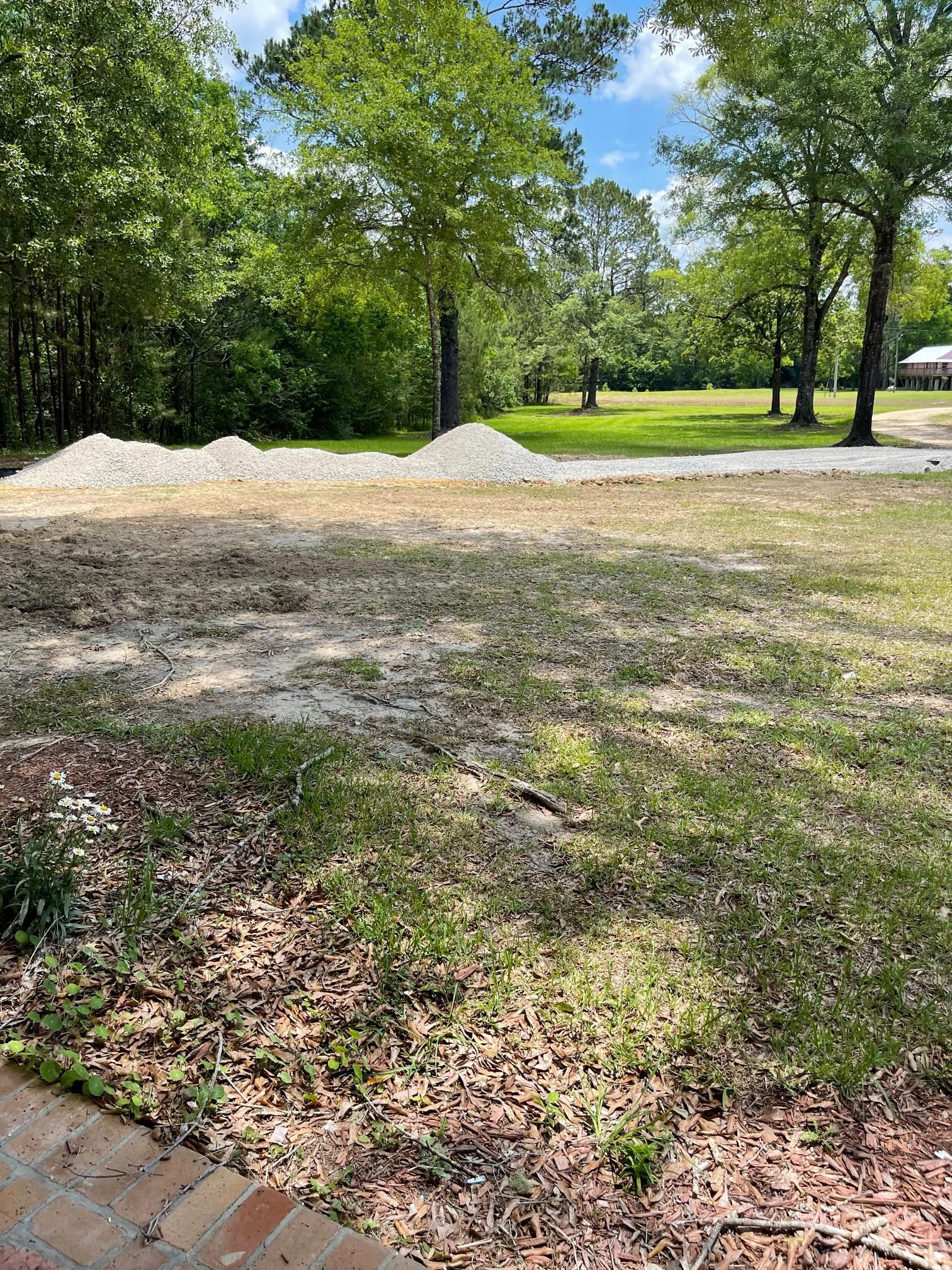 Site work after storm cleanup repair parking in yard - Before